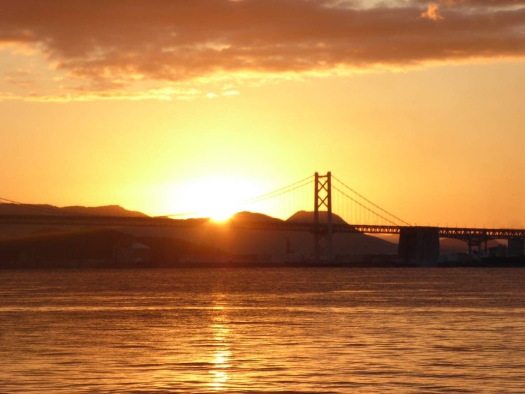 午前7時15分を過ぎた頃、東の空の、瀬戸大橋の向こうの山の上から、はっきりとお日様が上がっていくのが見え、空は神々しいような色へと染まっていきました。